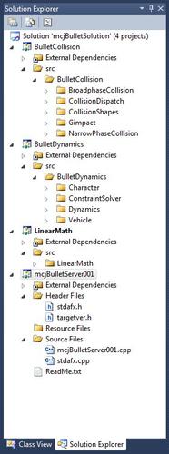 i copied the big Visual Studio 2010 C++ solution, that comes with the Bullet Physics sdk