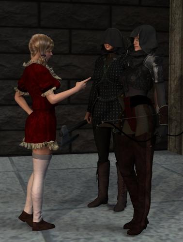 You may want to increase your lighting a bit. The guards are kinda hard to see with the dark texture on the Armour. You could create a spot and shine it over hte girls shoulder onto the guards. The intensity should be set pretty low so its not overpowering