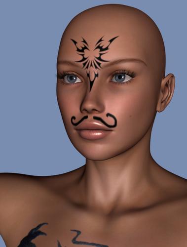 In one image I used a shader on the face skin. In the other, I drew a mustache on the mapped texture.
