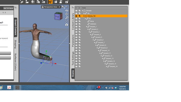 I click on the tail, and it bends forward and the body stretches, looking like a thin piece of "taffy." When I try to correct it (by clicking on the tail and dragging it toward the bottom of the genesis figure), it flips around (as does most figures with tails or long necks), wraps around itself like a worm. The flat piece generally expands and what should resemble a tail on the figure looks more like a creature that swallowed a ruler.