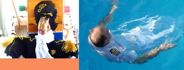 Thank you, Cho - our real captain shared your views. (He is shown in the second pic, providing the water turbulence.) I was a little embarrassed that night when he bellowed at me in the bar, "You were robbed!" But - what the hell? - it was fun. All entrants got a bottle of champagne and the prize for the winner was a key ring. (Hey, wow.)