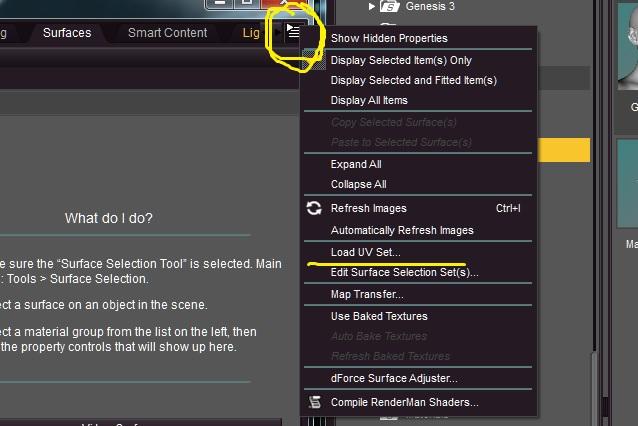 I am however having trouble with Step 2, can you paste a screen-shot showing where to right click to load the UV set.