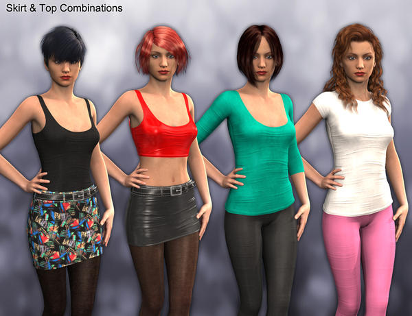 BTW I think its in the read me, but if you ever want to have a t-shirt / top overlaying a skirt; you can cheat a little by using two super dresses. one for the skirt and one for the top, hide the belt hoops on the skirt and dial in a couple of morphs to the shirt.