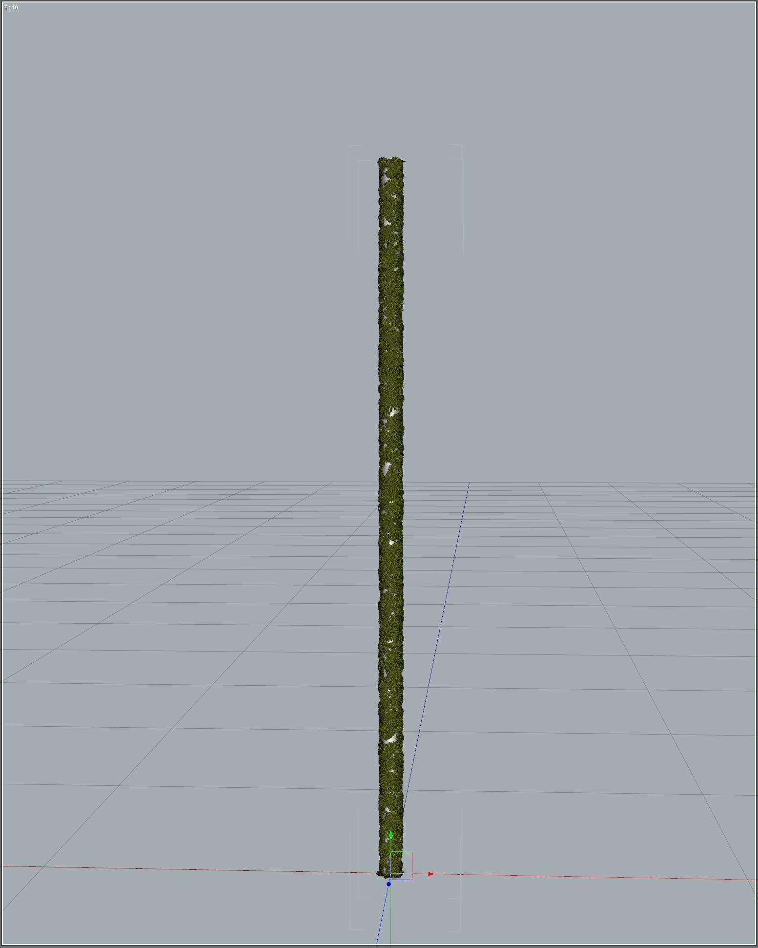 Looking from the front with an orthographic view, we can see that each instance is rotated in the XZ plane, but they are all still vertical (clamped Y axis).