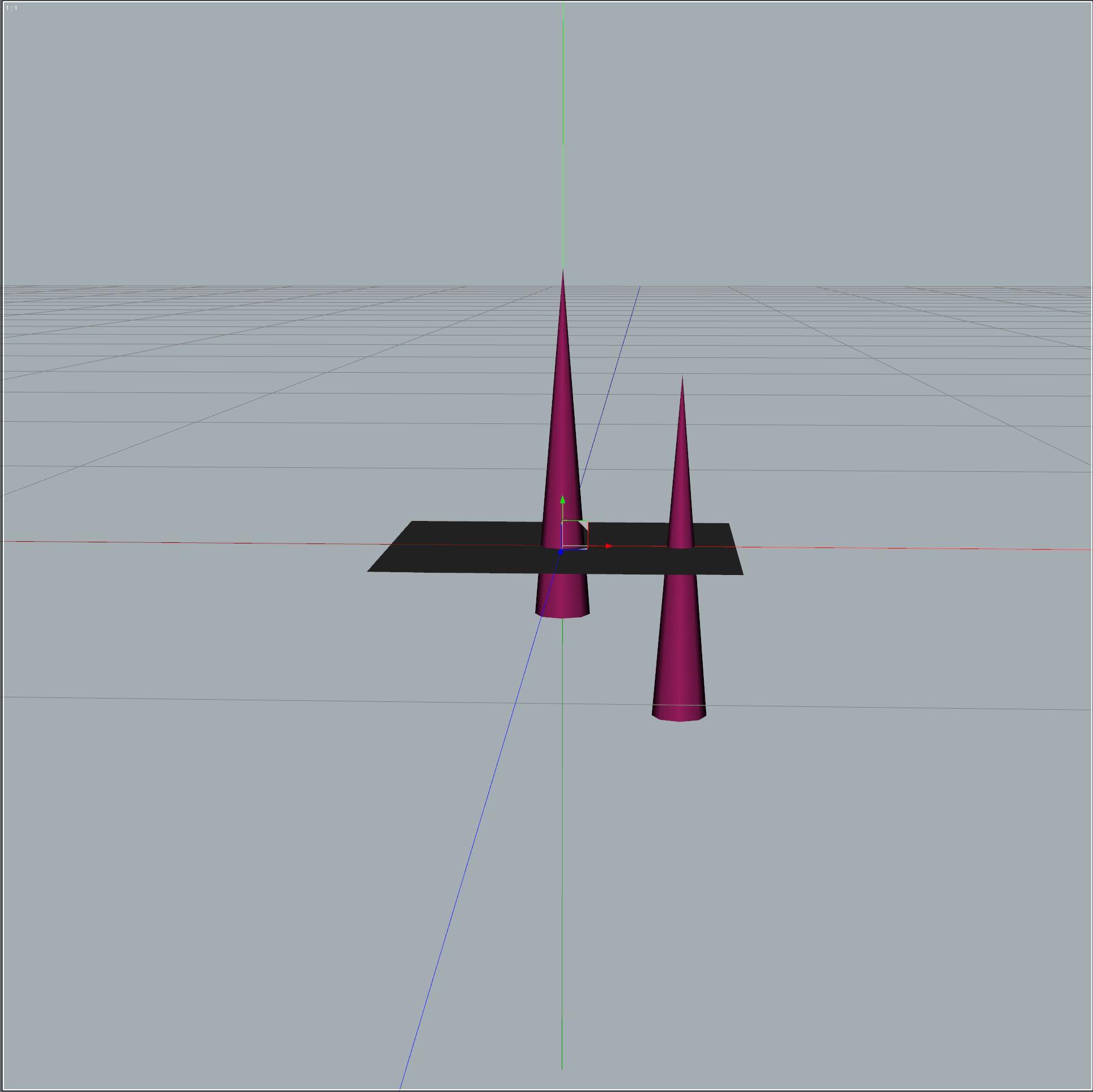 This is what rendered. You can't see the bottom of the cone instance on the right. It is below "ground":
