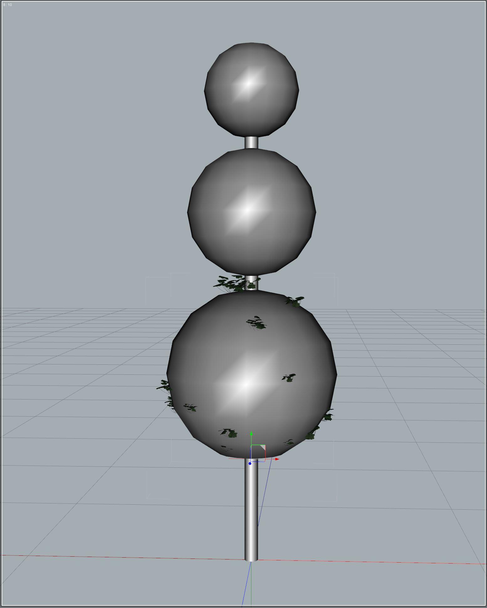 The bottom topiary leaf ball is done. Now we can use a nifty UltraScatterPro feature to quickly build the other two balls. UltraScatterPro allows you to import all the settings of an old scatter into a new scatter.