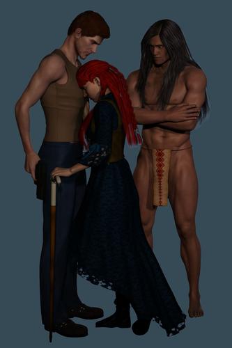 I've been working on the characters for the third book since late last year. It's taken awhile due to needing some clothing items for one of the characters, refining two of the three characters and just general tweaking of poses, fabrics for clothing and lighting. All three are G2. The one on the right hasn't changed since I first posted him earlier in this thread. I was that happy with the way he turned out. The other two however... Well, I had to redo her.