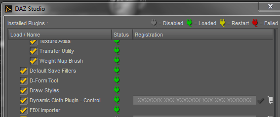 Can I see your Plugins LIST? From inside DAZ Studio? Help Menu>About Installed Plugins and get Dynamic on the Shown part here is mine as I just started adding my Plugins again on a New PC.