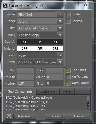 So I've made a dress for Genesis, used the transfer utility to rig it, and then dialed up all the female shapes one at a time and then went looking for the shapes in the dress, like Daz Prod's tutorial shows, so that I can fix up the places where it pinches and bunches in my modeling program and replace the auto-generated shapes with better ones. Problem being, when I get to the step that I go looking for the shapes in the dress, they aren't there. Daz Prod's tutorial is from 2011 and uses the beta release of DS4, so things have changed a little, but I can't find any more recent tutorials for the process, so maybe somebody can help me out? I mean, I can export the shaped mesh to my modeler just by turning Genesis invisible and telling the exporter "ignore invisible nodes", but then how am I going to import the shapes back in once I've touched them up in Blender?