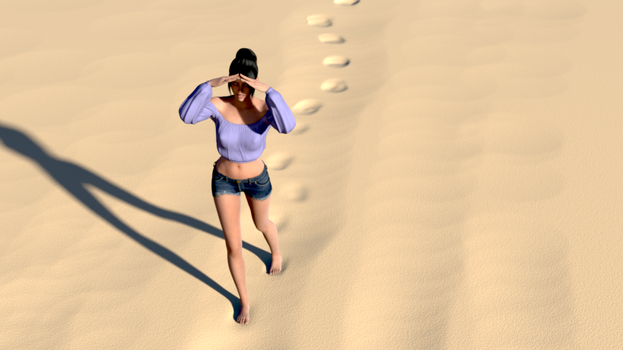 Just now looking at a Now Crowds Billboard beach scene reminded me of a problem I've often come across when using beach or desert scenes: footprints are very conspicuous in their absence. Even in the only sand product I have where there's a "footsteps" material (First Bastion's "Rolling Plains") the prints when added are barely discernable. But is it possible to create a morphable footprints product which can be applied to any sand environment? [I've also had the same thought re adding morphable streams to flat land environments].