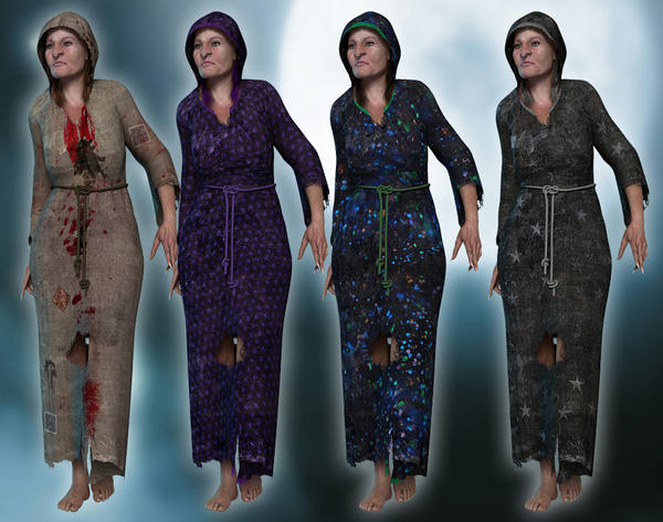 Regarding the robe - are you in for a treat! 3DWizard packed it with loads of morphs, so it's very versatile. And the craftsmanship he did is simply superb - the natural wrinkling of the fabric, and the hood movements are well thought out. I think you'll get a lot of use out of it no matter the setting or genre.