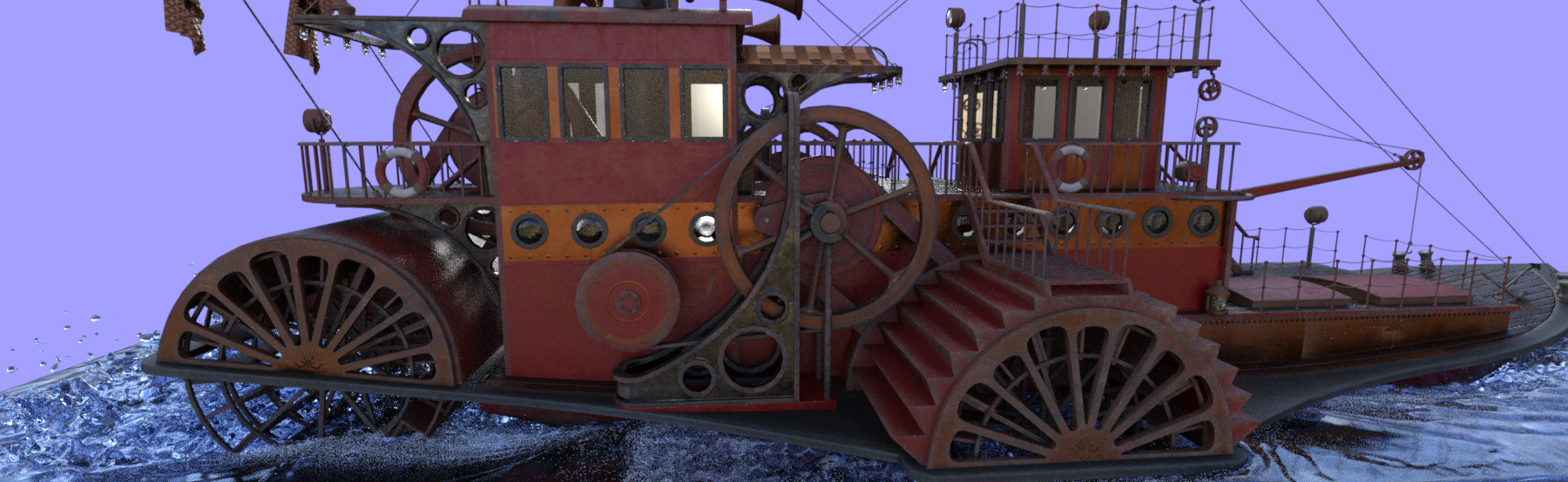 The Steampunk Paddle Boat. Complete with 3Delight and Iray materials. As well as basic Poser support.