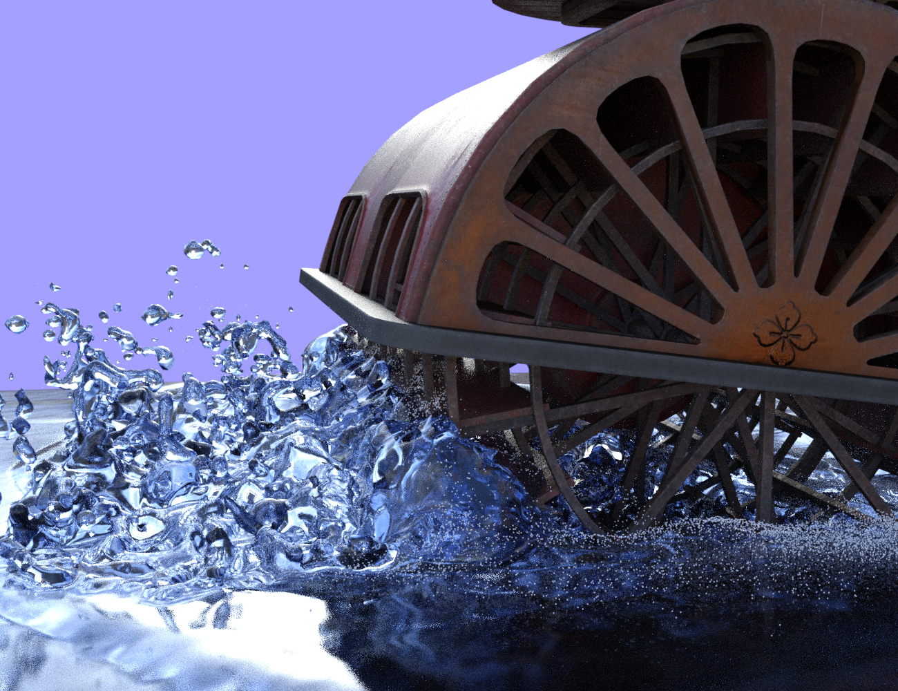 Have you considered creating a version with the appropriate water over the paddlewheel? I know that I have not learned enough to do make the possible render authentic.