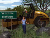 Had to figure out why a road roller would be in a conservation awareness render-- otherwise it's just a distraction and the whole concept is "no future."  Added some signs and a kiddo playing on it to hopefully add context.
