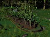 Here is an update of my maize garden.  The background render is complete and gets placed in the BACKDROP (not background) slot of the scene settings.  The light direction, the camera position, and the terrain model are retained from the first render.  The terrain model has its resolution reduced to save resources and the terrai shader is changed to a shadow catcher.  I've placed some maize plants in the garden.