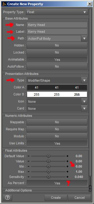 Just a couple of additional notes regarding the creation of the morph sliders as I described. As I mentioned, many of the properties entered when you create your slider (Step 1 in my post) can be edited anytime you wish afterwards. For example, in the case of mine, I probably shouldn't have named it Head when it was actually full body. I may have better chosen to also put it in a different category. Additionally, as stated, I can add custom colours to the slider to more easily differentiate my own morphs and an icon if I wish. If anyone has created a slider and wishes to know how to edit the properties, that is a fairly easy task to both explain and do. Say the word.
