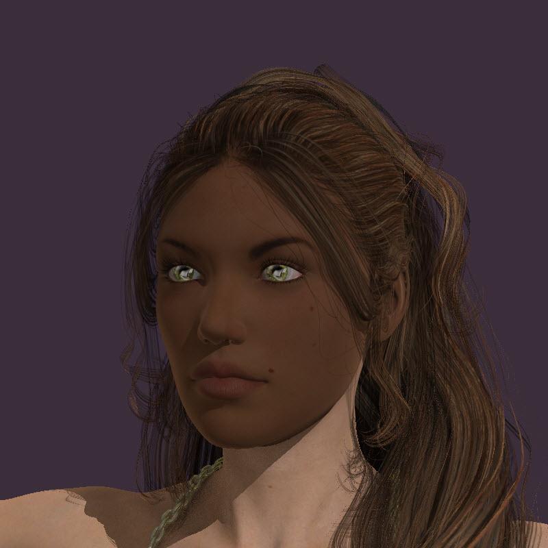 Darker Skin: The simple way is to darken Diffuse Color. Here's a value of 125 108 90 on face, lips and ears.