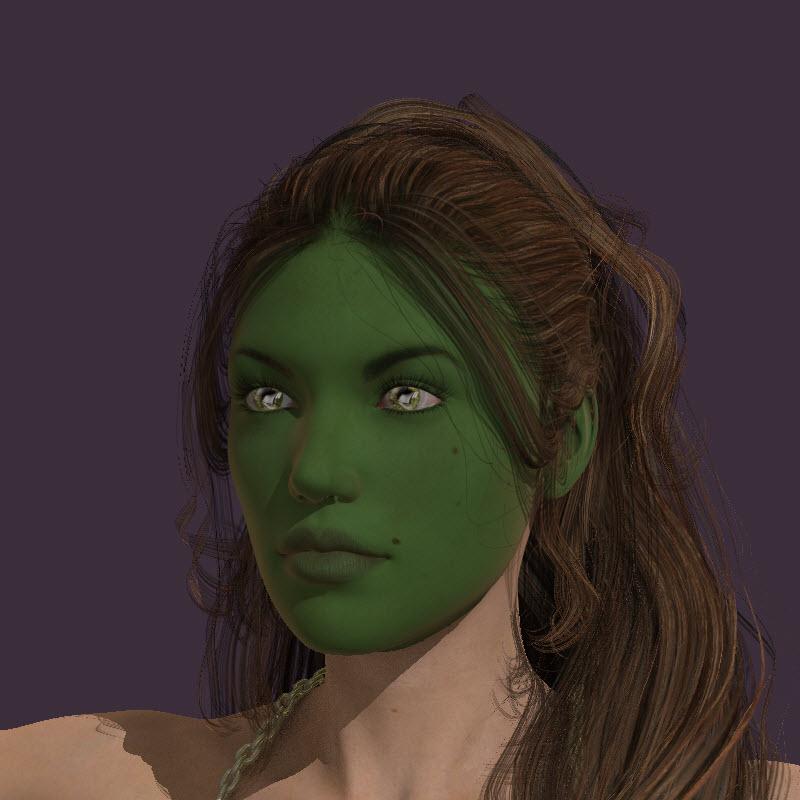 So If you want green skin with blue velvet and yellow highlights... Specular Color 101 255 99 and Velvet 198 255 254. Keep in mind that the more neutral (muted, i.e., towards the bottom half of the color picker) the fantasy color, the more "natural" it will look.
