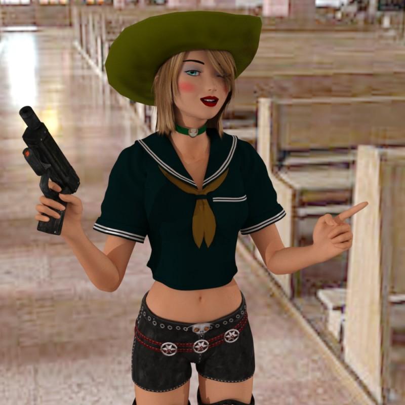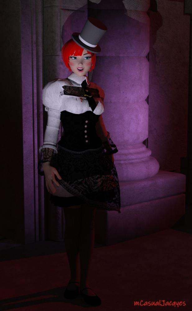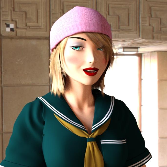 I took a scene that I recently completed and added a hat I recently purchased. The character is G8F and the hair is Bang Bob Hair with dForce. After the hair was simulated, I froze the simulation and used this script to morph the hair to fit under the hat. For comparison, the scene without the hat is in my gallery.