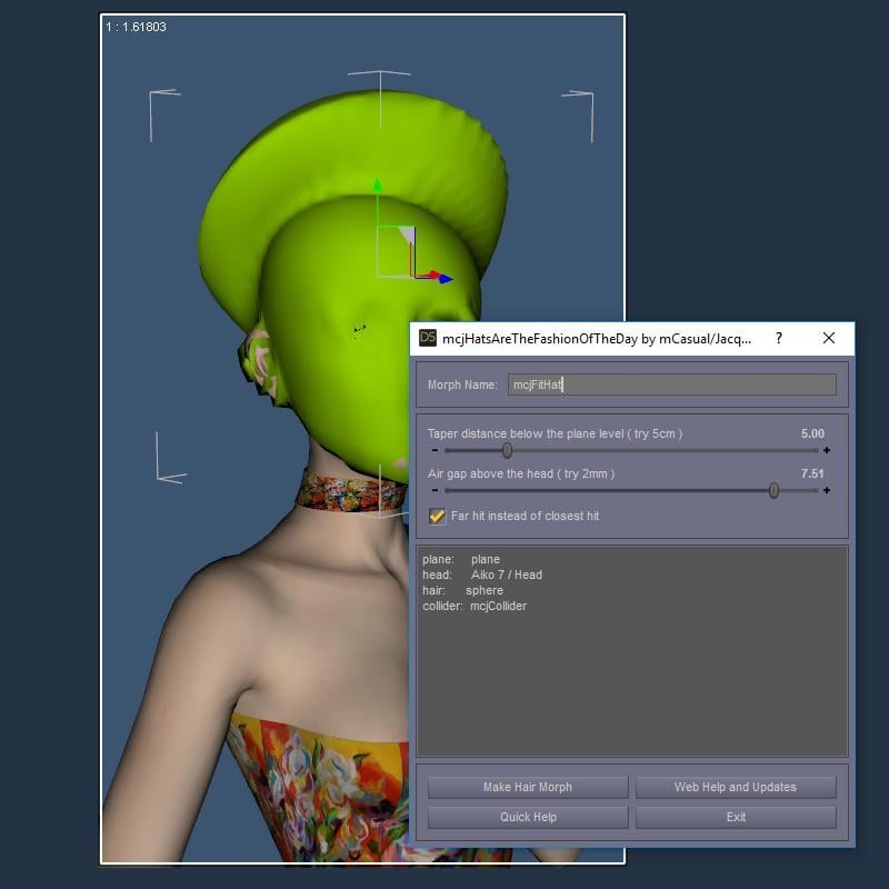 2 - the mcjHatsAreTheFashionOfTheDay script which uses the services of mcjCollider to squeeze the hair