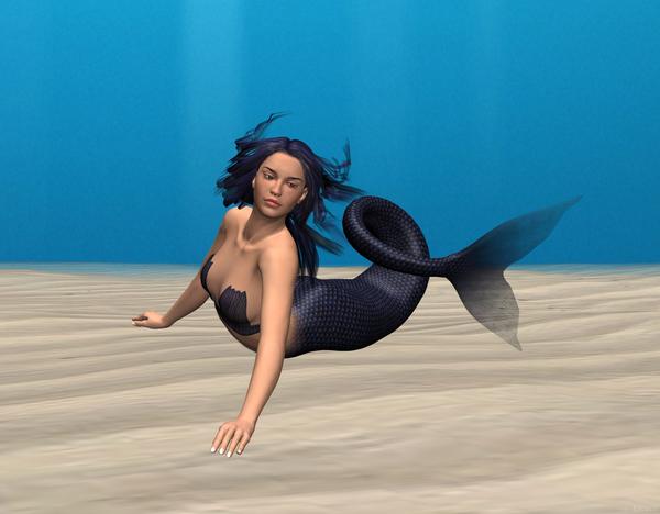 A quick test more. In the first render I used my own custom lights (two distant lights), as I didn't feel the mermaid looked so good using the default lights in the preset scene (I removed these completely).