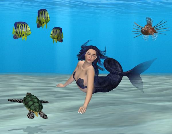 I just spent about an hour playing with it, got three renders, and am pleased so far. But it is really barren. Anyone know of any sea life, animals and plants,( besides mermaids!), to populate it with?