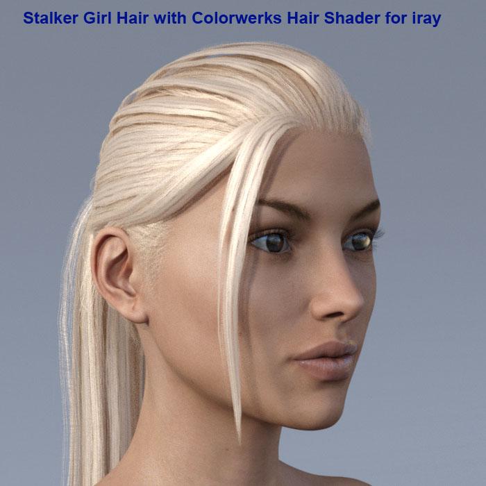 As for converting the hair for iray, I tried Sloshwerks' ColorWerks Hair Shaders for Iray and it works pretty well with the Stalker Girl hair. I've attached a few quick renders below to give you an idea of how the hair looks on G3.