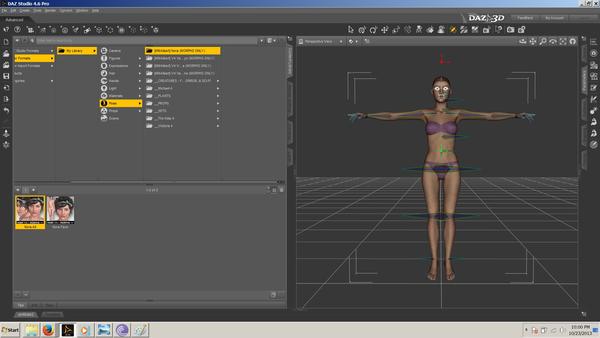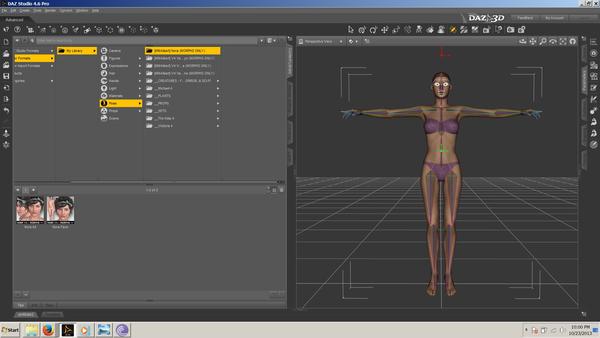The first picture is the base V4 BEFORE injecting the character morphs. (I have the Joint Editor tool selected so that the figure's rig is visible.)