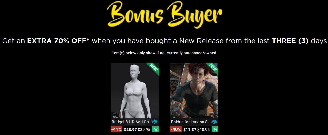 The point of a sale is not to give things away for free, but to encourage customers to spend more than they otherwise would. Yes, admittedly a lot of Daz's sales do work out that with stacking discounts, putting more in your cart can work out with you spending less (which is technically a loss per customer as far as Daz is concerned, but if it encourages more people to buy, they can win out) - so while some offers may involve throwing a PC+ item you don't massively care about into the basket, this one is are more along the lines of "Oh, I like that, and that brings the price of the other things down as well, I'll get it all now" or "Hang on, I'm buying the key item anyway, is there anything in my Wishlist that I can benefit from that extra 10% on?"