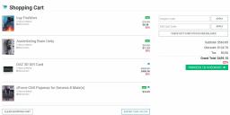 Ooh boy, unless there is meant to be an image loading behind it that just isn't loading yet, the text under "Gift Cards 10% OFF" is practically unreadable. Dark gray-blue on black isn't a good option. I'm not sure if it is part of the page style that was meant to be over written or just a mix up or what.