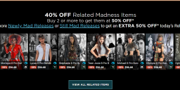 The second Related Madness offer doesn't appear to work. It suggests having 2 of today's releases would give an additional 50% off after the 30% from buying one new release. Also simply having 2 still mad releases doesn't change the price. And putting 2 of the Related Madness items in the cart doesn't make them 50% off either. Sorry, I can't take a cart shot on this clunky phone!