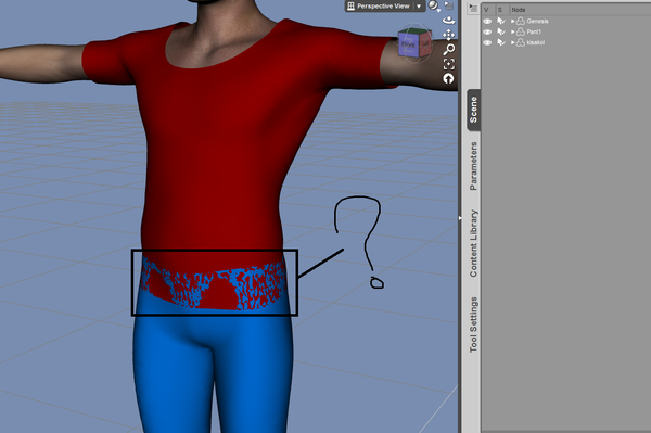 You need a morph to pull the bottom of the top out over the top of the trousers, or you could apply a Push Modifier (Edit>Figure>Geometry>Apply Push Modifier) but that will affect the whole top.