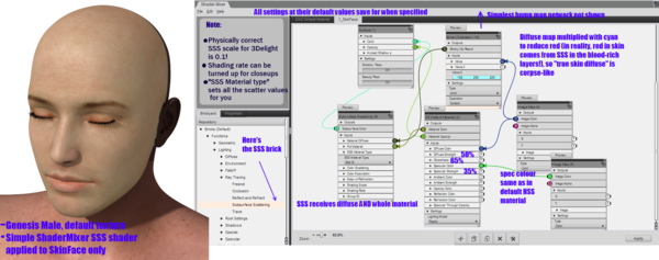There used to be a spirited discussion on the old forums in the aptly titled "sub-surface" thread, but I cannot connect to forumarchive.daz3d.com at the moment... We have a new thread now, here: http://www.daz3d.com/forums/discussion/21611/ - not purely dedicated to SSS or Shader Mixer, but still, there are some very knowledgeable people hanging around.