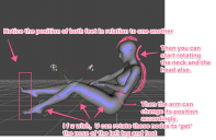 @sueya: I would recommend starting with her collar, then moving to the shoulder joint. Generally, we move all of the applicable joints some when we move a limb somewhere, instead of leaving most joints in neutral and maxing out one. I find it easiest to work from root to tip - In this case start with the collarbones, then shoulders, then adjust the arms to get them back into position. On a completely unrelated subject, you might also want to try moving your camera down a few units.