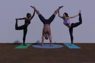In the meantime, I decided to see about another pose, so here is my first attempt. I have some issues with the girl on the pose left in the render. I have to get her hips/pelvis rotated more to match what is going on in the photo and she has a twist in the leg she grabbing. His straddle angle in the pose needs to increase as it is wider in the photo and the model on the right needs work on her right arm position. We will see how this one comes out too.