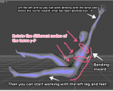 well even if I'm late I created a quick set of screen shots for the pose. these will probably help you through the process of getting the pose you want the key to most posing programs is the hip's pelvis since they tend to link everything to them if you look at the pose you want check the hip shape first are they bent forward back side to side the hip shape will move the entire character its always best to get it as close as possible to its needed position first so you don't have to change it later making all the other positions move too.