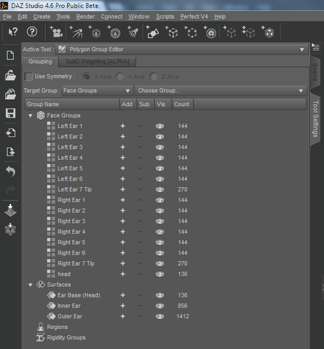 The CR2 exports only the 'head' group, but all of the rigging, the dson conversion doesn't export anything except the rigging. I don't know if this is a DS export issue, Poser import issue, or just an issue with these ears.