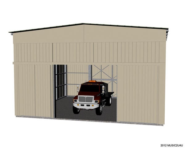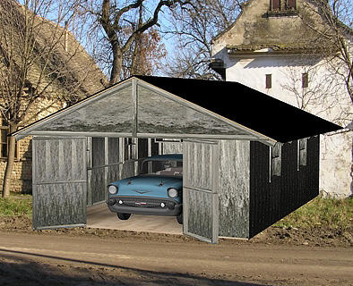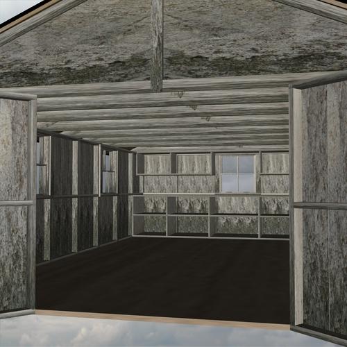 Here is one of my garages. It has a full metal frame and each piece of siding. The doors also, and they slide closed or open. I added a lift in the center. The other side has doors for a drive through too. Made in Sketch Up.