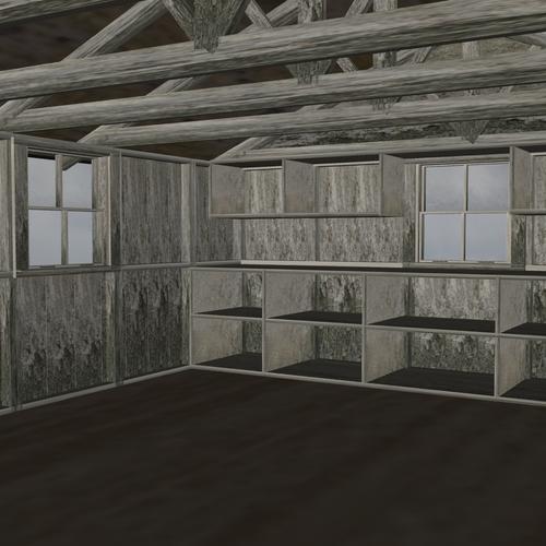 The houses in the scene are from First Bastion, and are partial loads from the Neighbors Yard scene, the Jakes Garage building was just that, a building, I noticed the doors were nothing but flat planes as well, as are the walls, if there is another version of this garage, I guess I should find it and download that!