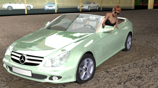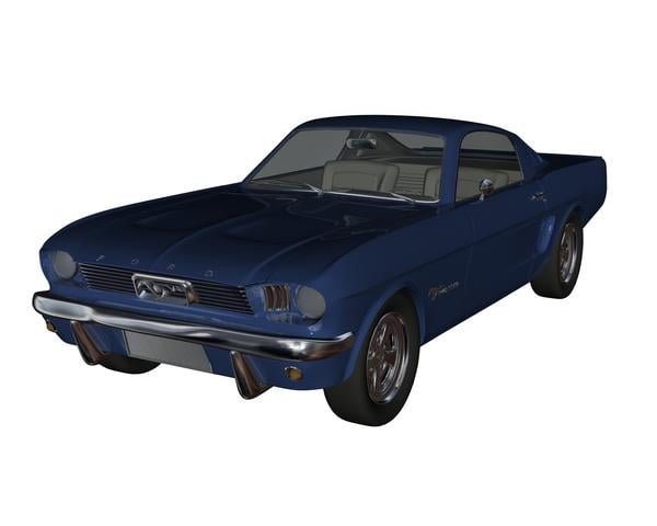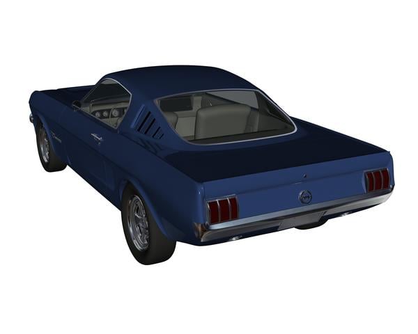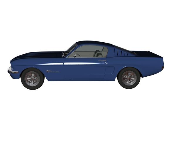 Here is the 1966 Mustang Fastback. Low poly yet very smooth. LWO and 3DS. Same here as the Corvette. The LWO file looks best in Poseray. Resaved as OBJ then imported it into Daz. Loads realy fast. Not as much detail as the Corvette, but a great scene car for low memory use. Again DZfires body shaders and chrome shaders. Real Nice simple 66 fastback.