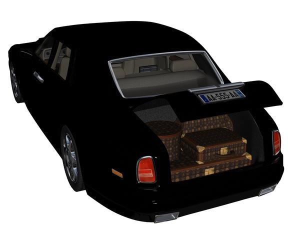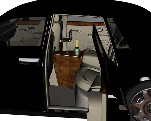 And finally...here is one called the Roads Royds. I think I got this over at sharecg.com in the 3d models section. Maybe not. Who knows...the luggage in the trunk was included with the car as seperate .pp2 props as was the rear console, mini computer and champaign bottle and glass. I applied the chrome shaders as the ones it had sucked real bad...lol. It came black with bad shader too, so I applied DZfires deep black. Looks pretty good now.
