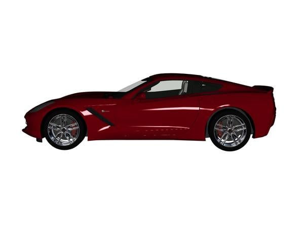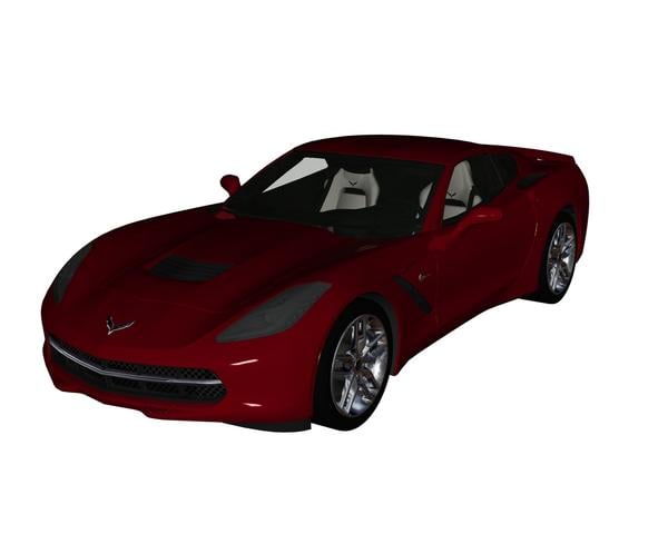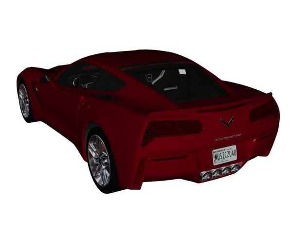 Here is the Corvette. It is in both LWO and OBJ formats. The LWO one will open in Poseray and has all the textures in order. It looks great and very smooth, yet low poly. I resaved it as an OBJ file because the one that came with it is kinda screwey and the textures don't apply in Poseray. The LWO was much better. I applied DZfires shaders on the body and some chrome shaders and it looks pretty good. Very cool car in real life. I've seen one and it caught my eye immediately.