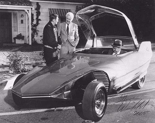 Here is an even RARER one. Shown here with Captain Kirk. This was to be the Star Trek car. It was called the "Reactor 2". It was made from a Citron ID 19. For some reason, it did not make it to the show. It did, however, appear one time in a Bewitched episode. That's it, it then went on to be displayed at car shows. It's where abouts now?...who knows!