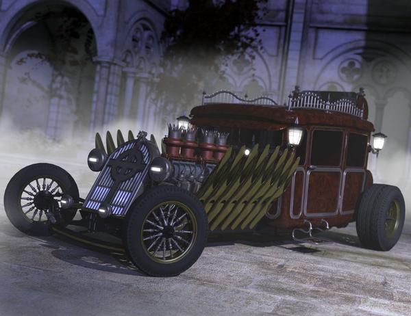 When I loaded it into Poser as a prop, I loaded it in 3 parts, the body, the interior tub and the bottom plate which includes the wheels/tires, this cured the problem of all the chrome parts being chrome, such as the interior and bottom plate, almost like putting together a slammer car kit.