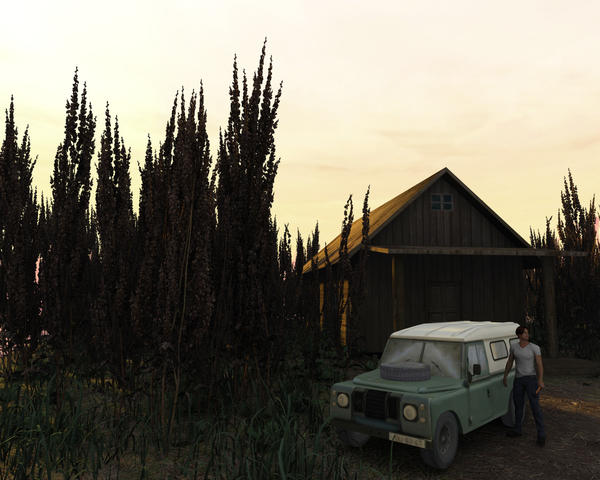 Here's a render including a dirty old jeep [Edit: Landrover] in a setting.