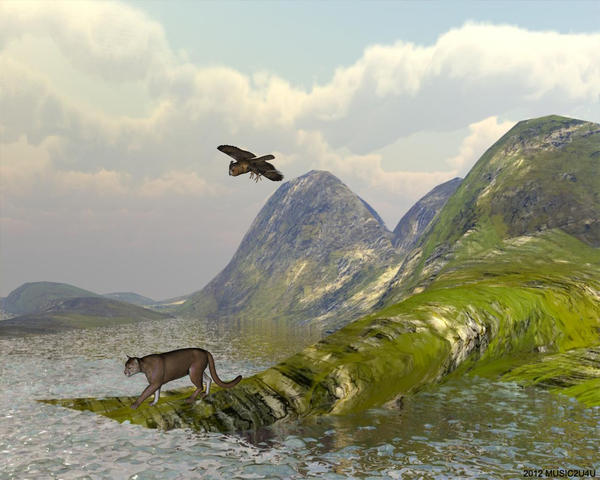 Also this one too...Daz Owl and Lion...rendered in Bryce 7.5.