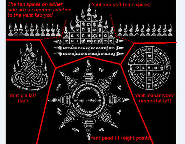 Your disclaimer on ShareCG seems to suggest that the Khmer text might be gibberish because you replicated it from blurred pictures, but you must know that at least two big (coffee table) books on sak yant came out in the past year, and surely they have clearer images of the text -- or maybe not, on the other hand, since the photos are on the arty side.