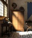 well here's the same room but with the lighting set up with burn highlights/crush blacks tuned down. Notably I was able to turn the strength of the sun waaaaay up without blowing out the lighlights. Also the effect of the bounce light is suddenly much more evident - Peronally I think this setup makes not only makes the room look less like a cavern, but also makes the effects of light bouncing much clearer. look at the floor infront of the cabinet and how much clearer it looks tinted brown as its lit by the light bouncing off the cabinet.