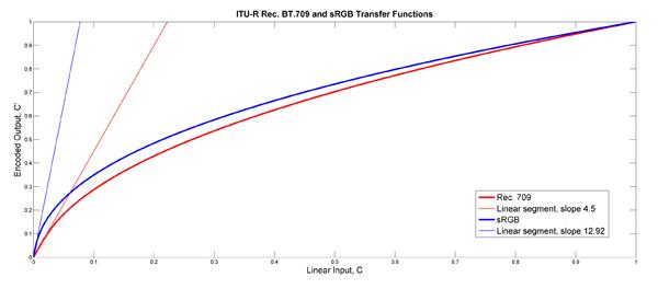 They use the same RGB primaries - meaning, the color gamut (range of colors) is the same in both. But the gamma curve is different.