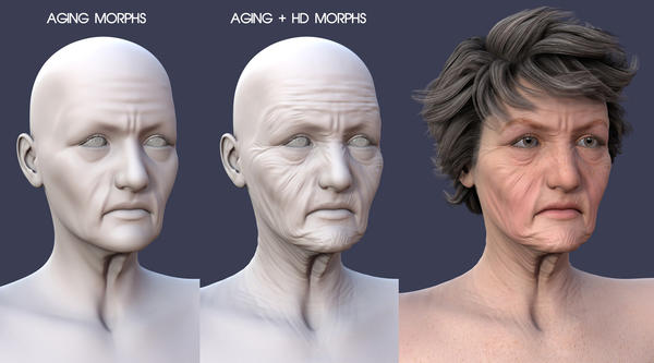 Hi Guys. Been slaving away with Aging morphs2. I decided to add in the Faceweight product morphs as well since the two work very well together. Most morphs have been have been revised, some added and some removed from the G1 version. Also this version will have full body HD morphs.. EG you can dial in the head HD morph, hand HD morph and so on, so you can choose what you want added in.